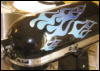 Description: A stand mixer with blue and white flames